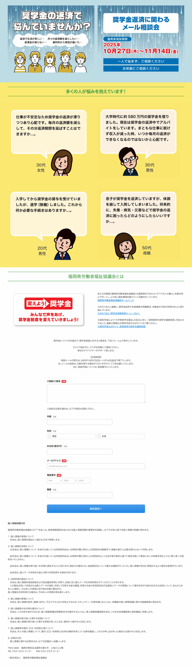 本日10/27より 奨学金返済に関わるメール相談を受付致します。
